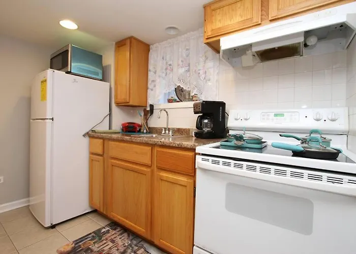 The apartment is equipped with self-catering amenities such as coffee and tea making equipment, a refrigerator, and an oven, providing guests with the opportunity to prepare their own meals. Chicago O'Hare International airport is at a 15-minute driving distance, and Higgins & Central/Edmunds bus stop is right near Style & Serene In Jefferson Park Close To Dwtwn & Ord Unit 1 apartment.